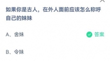 如果你是古人,在外人面前应该怎么称呼自己的妹妹?蚂蚁庄园2021年6月26日答案分享