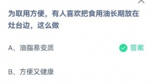 为取用方便,有人喜欢把食用油长期放在灶台边,这么做?蚂蚁庄园2021年6月27日答案