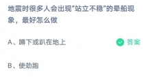 地震时很多人会出现站立不稳,的晕船现象,最好怎么做?蚂蚁庄园2021年5月12日答案