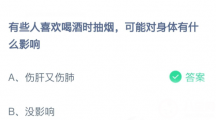 《支付宝》有些人喜欢喝酒时抽烟,可能对身体有什么影响蚂蚁庄园2021年2月23日答案分享